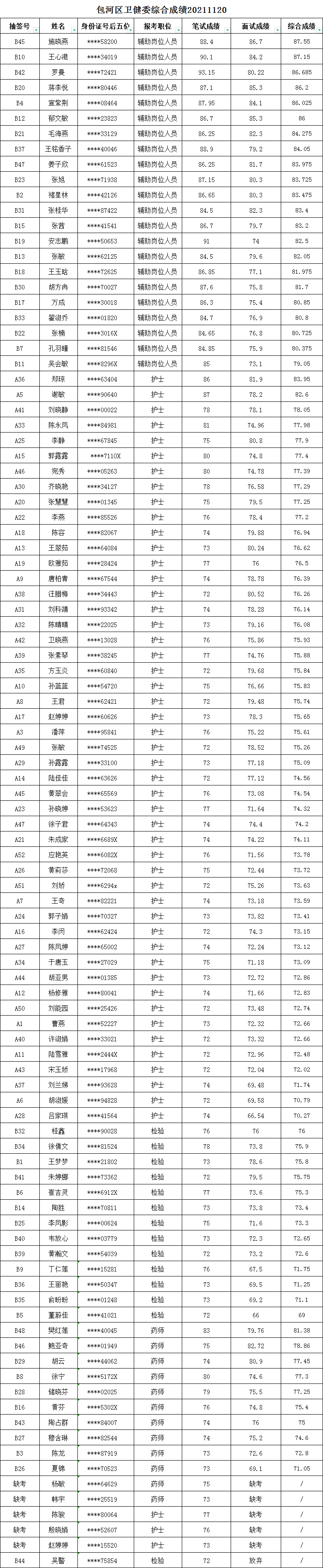 【人才测评成绩】包河区卫健委人才测评成绩公告20211120